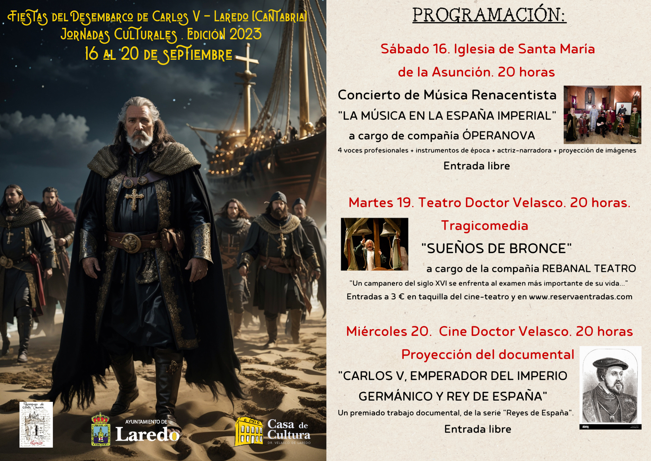 Laredo celebrará las Jornadas Culturales de Carlos V entre el 16 y el 20 de septiembre con una actuación musical, un teatro y una proyección documental. La séptima edición de este evento, organizado por el Ayuntamiento, servirá de antesala a la celebración del Último Desembarco de Carlos V, que tendrá lugar del 22 al 24 de este mismo mes.