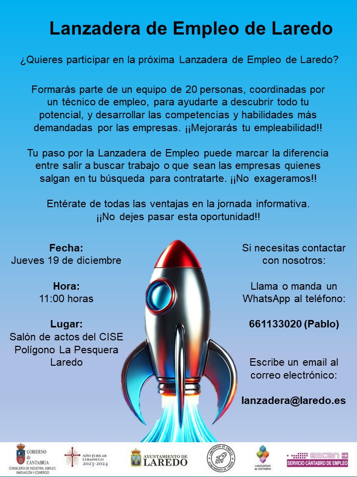 El proceso de inscripciones estará abierto hasta el lunes 30 de diciembre. Teléfono de información: 661 133 020. También se puede escribir un correo electrónico a lanzadera@laredo.es