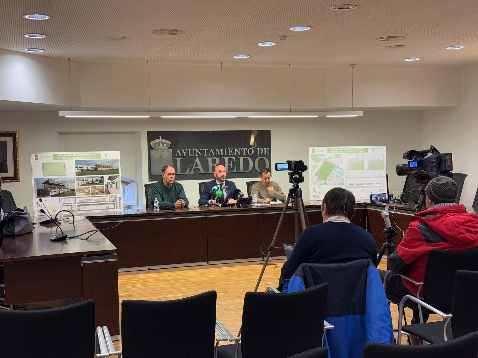 El alcalde de Laredo, Miguel González, ha presentado esta mañana el anteproyecto de renovación del campo de fútbol de San Lorenzo. El regidor pejino ha estado acompañado en rueda de prensa por el concejal de Deportes, Alejandro Abad, y el presidente del Club Deportivo Laredo, Orlando Gutiérrez “Orly”.
