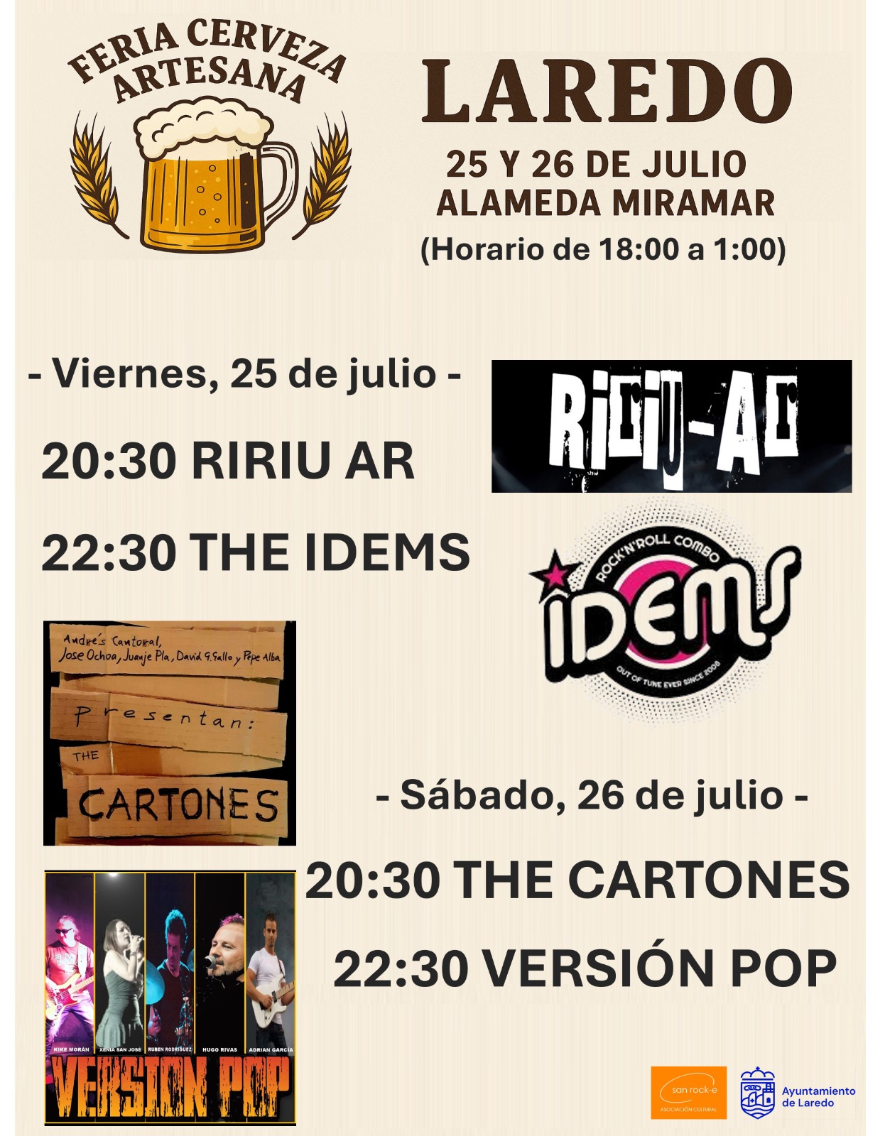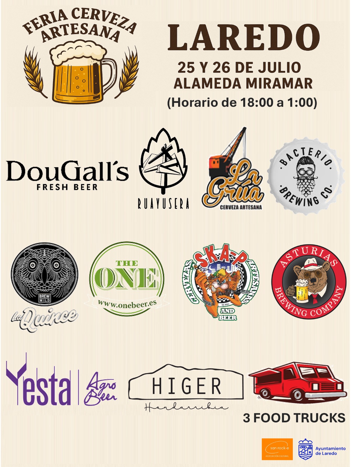 Tras el éxito de ediciones anteriores y organizada por la Asociación Cultural San Rock-e, con el apoyo del Ayuntamiento de Laredo, llega la cuarta edición de la Feria de la Cerveza Artesana los días 25 y 26 de julio en la Alameda Miramar. El evento contará con la participación de diez productores de cerveza que ofrecerán una amplia variedad de sus productos en los diferentes stands instalados.