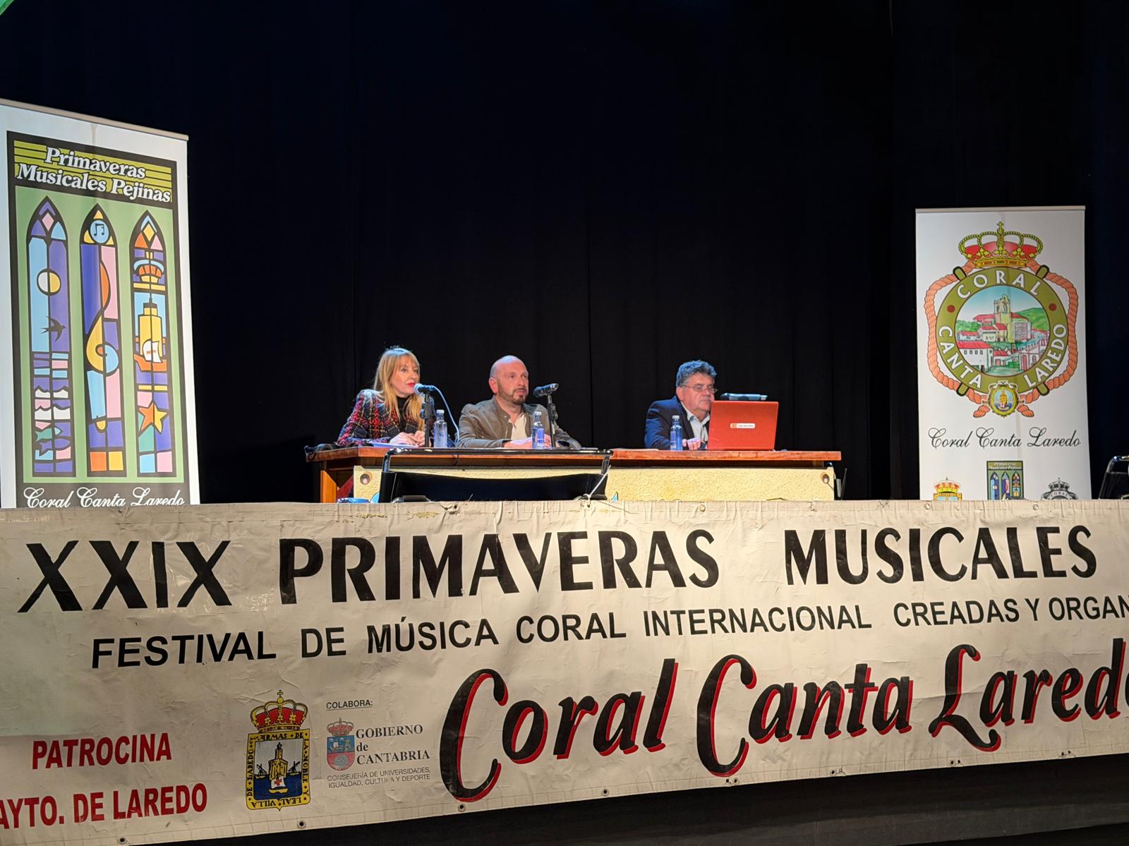 Laredo ha acogido hoy en la Casa de Cultura la presentación de la XXIX edición de las Primaveras Musicales Pejinas, un ciclo coral organizado por la Coral Canta Laredo que se celebrará entre el 9 de mayo y el 6 de junio. En el acto inaugural han intervenido el alcalde Miguel González; la concejala de Cultura, Laura Recio; y el presidente de Canta Laredo, Juan Pérez.