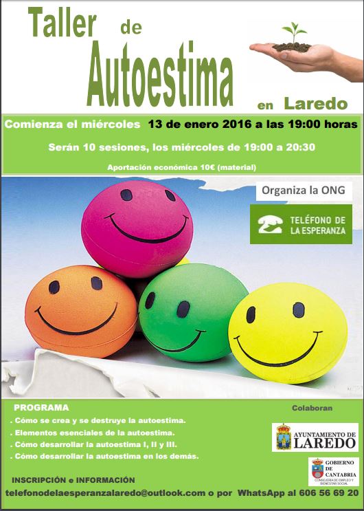 TALLER DE AUTOESTIMA EN LAREDO ORGANIZADO POR TELÉFONO DE LA ESPERANZA CON LA COLABORACIÓN DEL AYUNTAMIENTO DE LAREDO Y LA CONSEJERÍA DE EMPLEO Y BIENESTAR SOCIAL DEL GOBIERNO DE CANTABRIA.