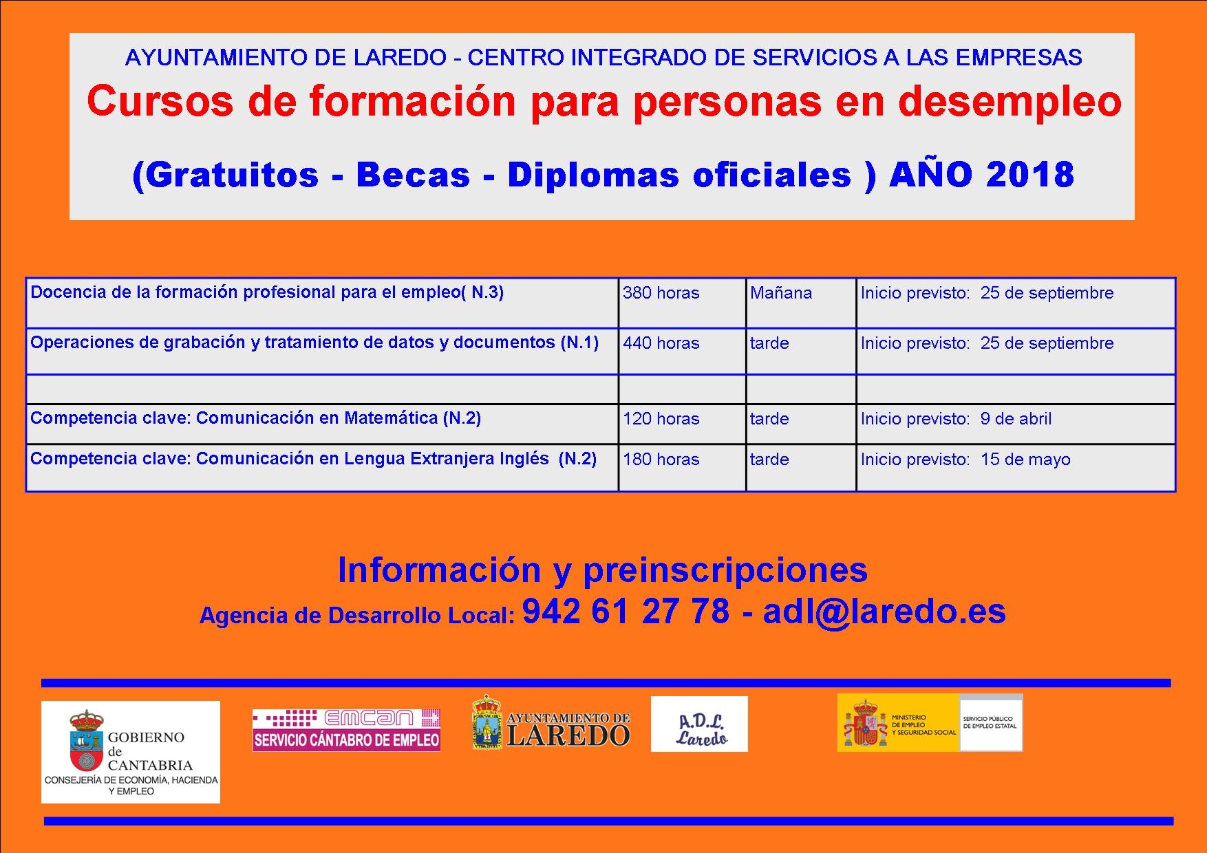 NUEVOS CURSOS DE FORMACIÓN PARA PERSONAS EN DESEMPLEO AÑO 2018
