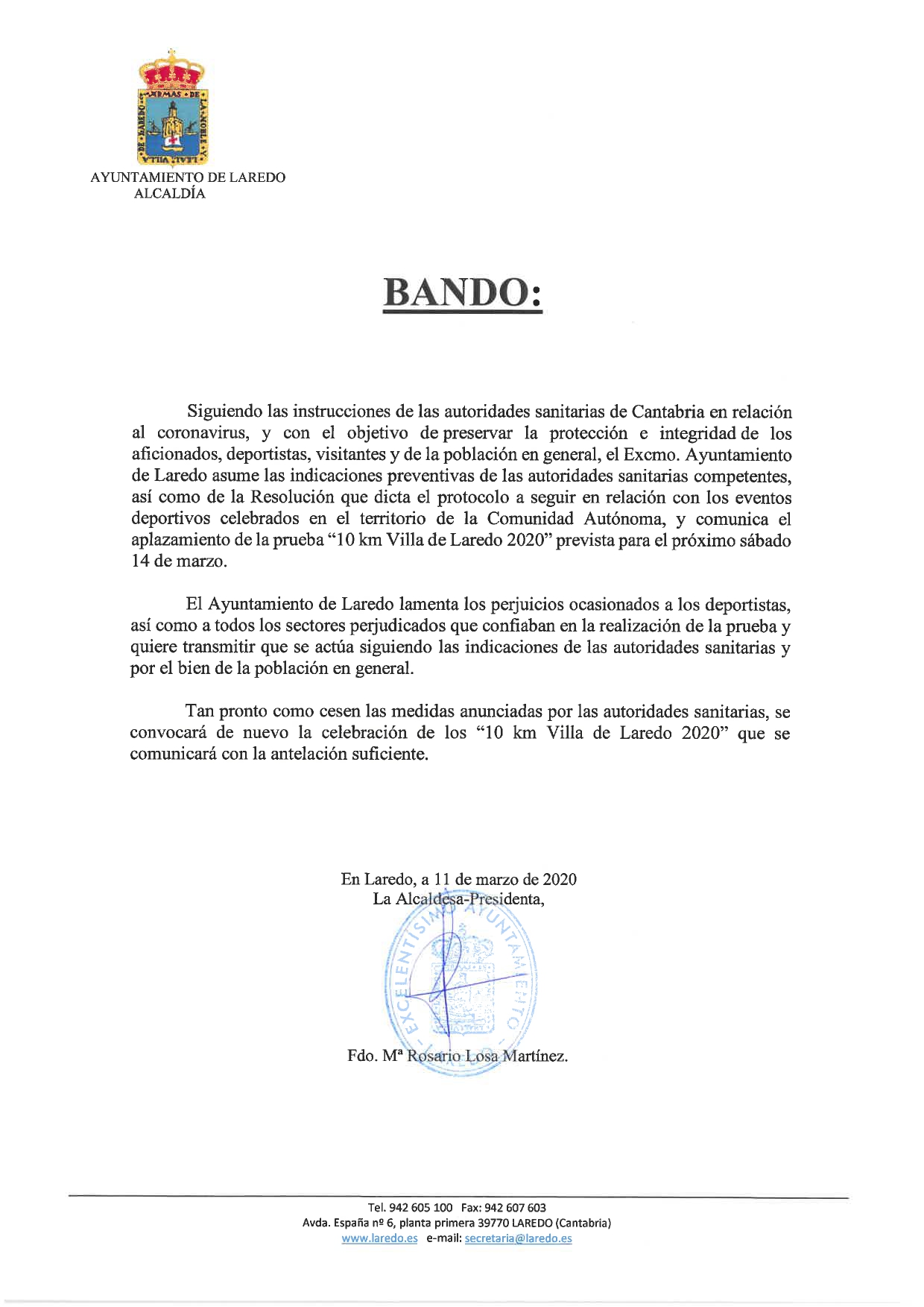 BANDO ACERCA DE LA PRUEBA "10 KM VILLA DE LAREDO"