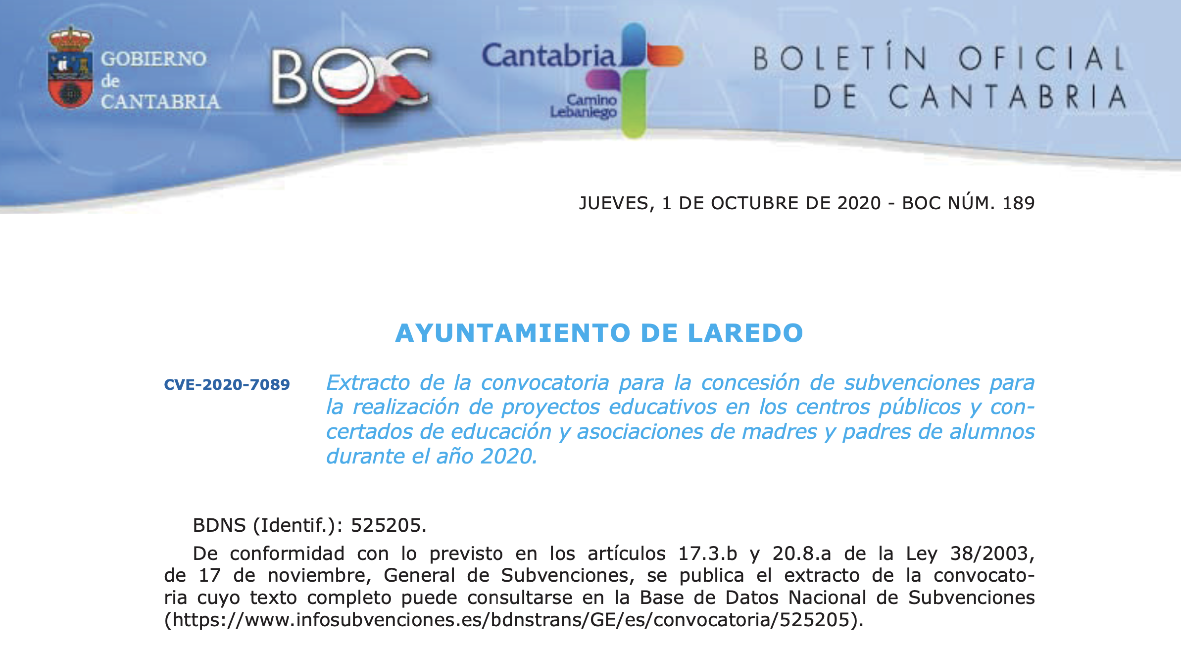 SE ABRE EL PLAZO DE PRESENTACIÓN DE SOLICITUDES PARA OPTAR A LAS SUBVENCIONES PARA PROYECTOS EDUCATIVOS EN CENTROS PÚBLICOS Y CONCERTADOS Y AMPAS