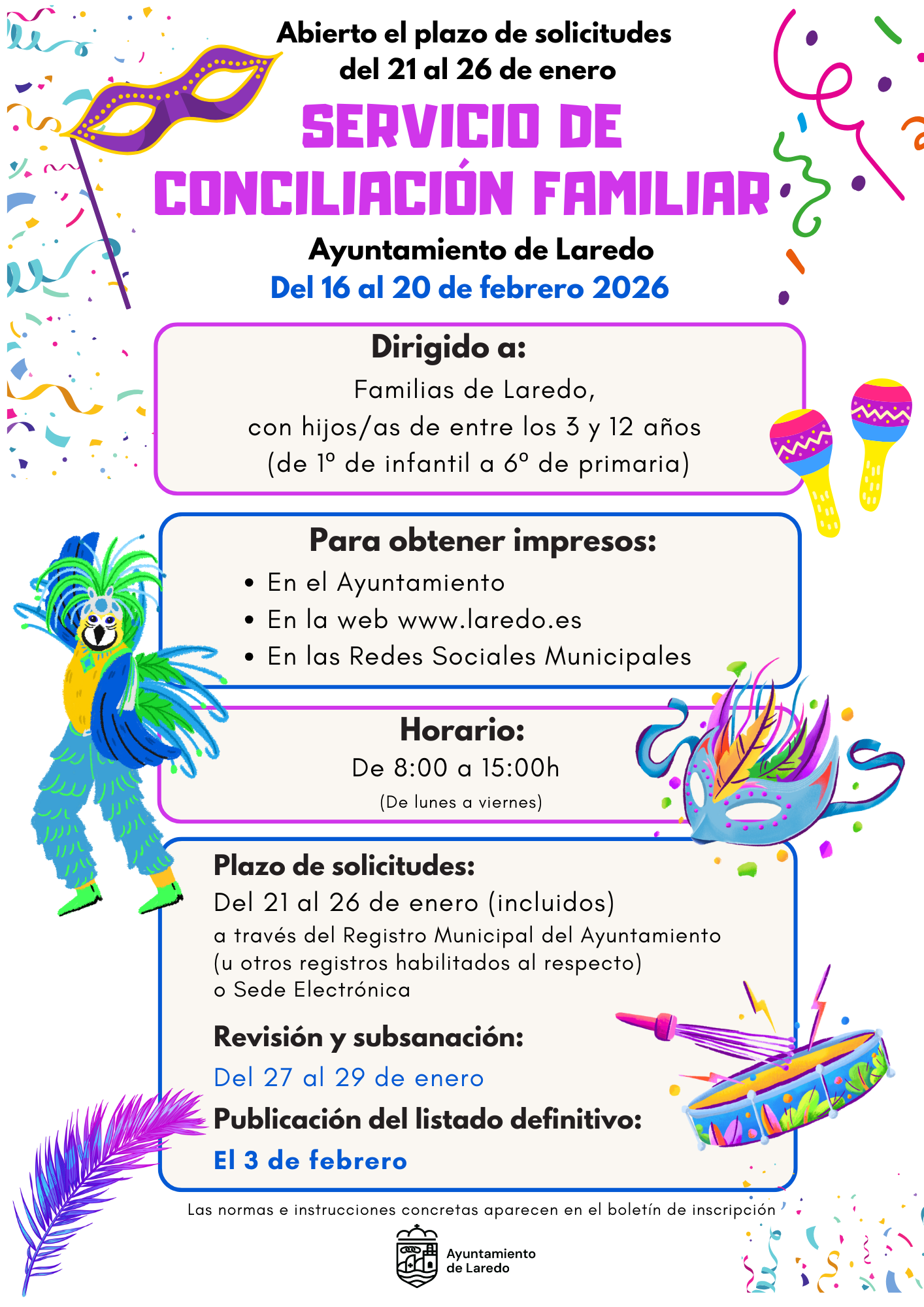 El Servicio de Conciliación Familiar y Laboral del período no lectivo de Carnaval 2026 se
