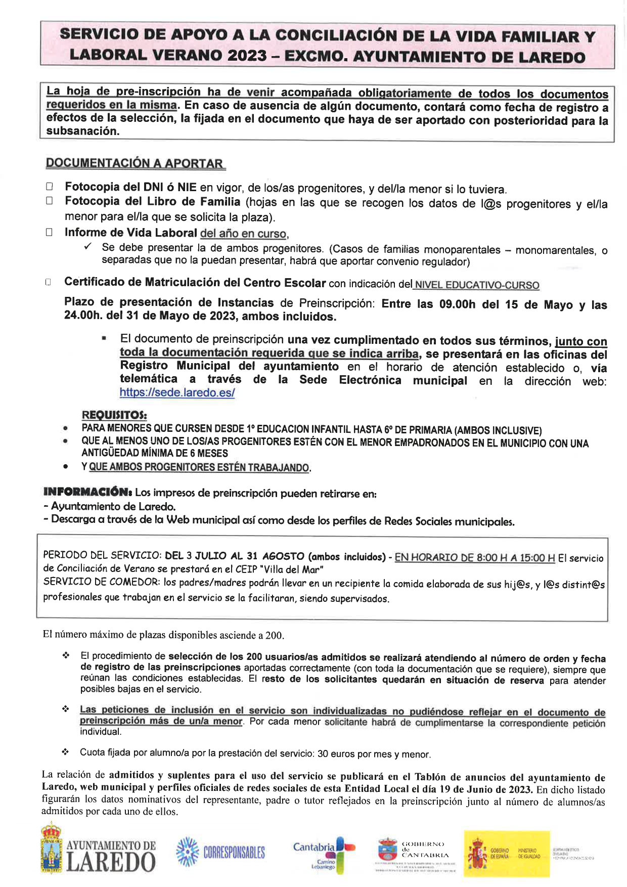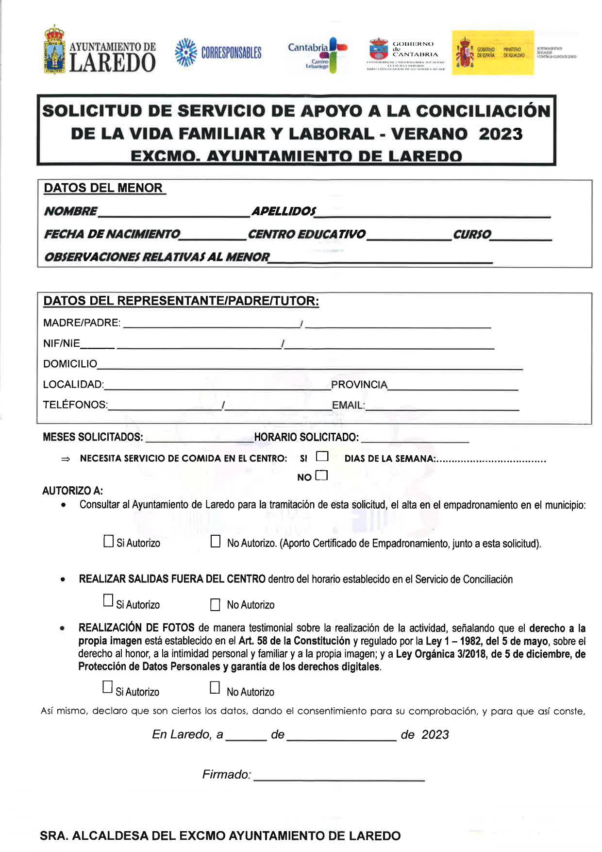 Se adjunta Solicitud de Servicio de Apoyo a la Conciliación de la vida familiar y laboral verano 2023 Exmo. Ayuntamiento de Laredo