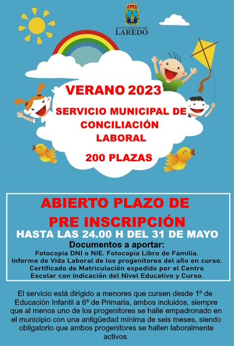 ABIERTO EL PLAZO DE PREINSCRIPCIÓN DEL SERVICIO MUNICIPAL DE CONCILIACIÓN LABORAL VERANO 2023 HASTA EL DÍA 31 MAYO