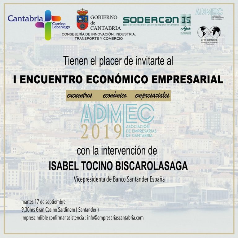 La Consejería de Innovación, Industria, Transporte y Comercio, a través de SODERCAN, junto a la Asociación de Empresarias de Cantabria, organizan los denominados Encuentros Económicos Empresariales, donde mujeres de reconocido prestigio en el ámbito social y económico, darán a conocer a la sociedad cántabra su experiencia en el mundo empresarial.