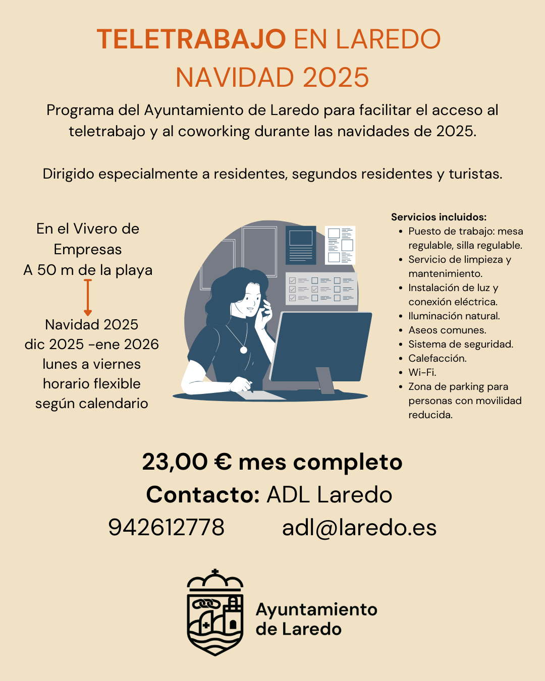 Programa del Ayuntamiento de Laredo para facilitar el acceso al teletrabajo y al coworking en navidad.