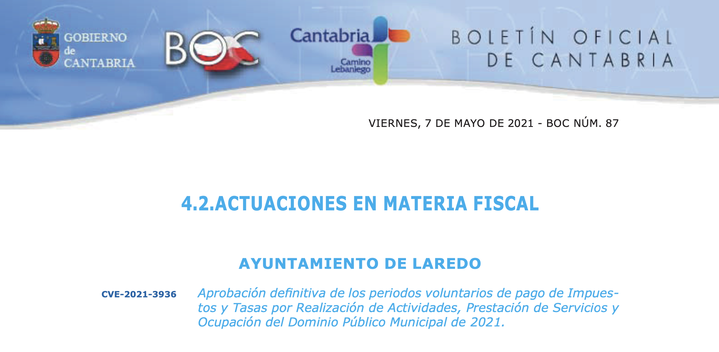 ANUNCIO EN EL BOC DE LA APROBACIÓN DEL CALENDARIO FISCAL